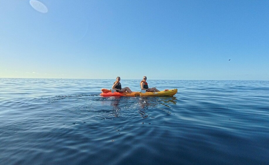 ร่วมผจญภัยไปกับการพายเรือคายัคและดำน้ำตื้นที่น่าตื่นเต้นในเตเนรีเฟ และชมโลมาและเต่าในถิ่นที่อยู่ตามธรรมชาติของพวกมันกับบริษัทพายเรือคายัคที่ได้รับการรับรองด้านสิ่งแวดล้อมเพียงแห่งเดียวบนเกาะ เรือคายัคของเราไม่ทำให้ตกใจหรือรบกวนสิ่งมีชีวิตเหล่านี้ ช่วยให้คุณเพลิดเพลินไปกับพวกมันได้อย่างใกล้ชิดโดยไม่กระทบต่อสภาพแวดล้อมทางธรรมชาติของพวกมัน คุณอาจถูกรายล้อมไปด้วยฝูงโลมามากถึง 30 ตัวที่มักแสดงด้วยการกระโดดสูงในอากาศ น่านน้ำของเตเนริเฟ่เป็นที่อยู่ของโลมาห้าสายพันธุ์ รวมถึงโลมาปากขวดที่พบเห็นได้ง่ายด้วย สายพันธุ์อื่นๆ ที่อาศัยอยู่ในมหาสมุทรแอตแลนติก เช่น โลมาฟันหยาบ โลมาลาย และโลมาทั่วไป ก็สามารถพบได้ในน่านน้ำเหล่านี้เช่นกัน เต่าไม่กี่สายพันธุ์สามารถพบได้ในน่านน้ำคานารี และเกือบทุกครั้งเราจะได้พบกับเต่าเขียวและบางครั้งก็เต่าหัวค้อนตลอดทาง แม้ว่าเราจะรับประกันไม่ได้ว่าจะได้เห็นสัตว์ป่าเหล่านี้ แต่ก็มีโอกาส 90% ที่คุณจะพบพวกมันระหว่างการเดินทาง เป็นโบนัส เราแวะว่ายน้ำและดำน้ำตื้นในอ่าวที่เข้าถึงได้ทางเรือเท่านั้น ซึ่งคุณอาจสังเกตเห็นสิ่งมีชีวิตใต้ท้องทะเลได้มากขึ้น คุณอาจมองเห็นเต่าหรือกระเบนกระทิงว่ายอย่างสง่างามไปตามก้นทะเลเบื้องล่างของคุณ