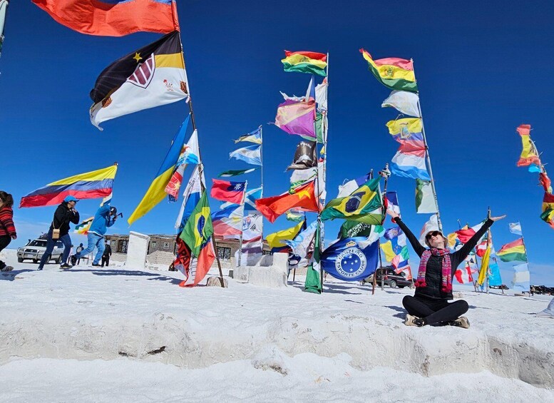 Then visit the small settlement of Colchani (salt miners’ workshops next to the salt flats), there, also find handicrafts made of salt, and textile art manufactured of llama and alpaca wool. These make excellent souvenirs to bring back home. Take photos as you cruise along the vast white expanse of salt, wade through “Ojos de Agua Salada” (salt water eyes), also visit: a hotel made completely out of salt which is currently used as a museum-restaurant, Flags of the World (Where you can bring yours and put there for free) and a Monument of Dakar racing.