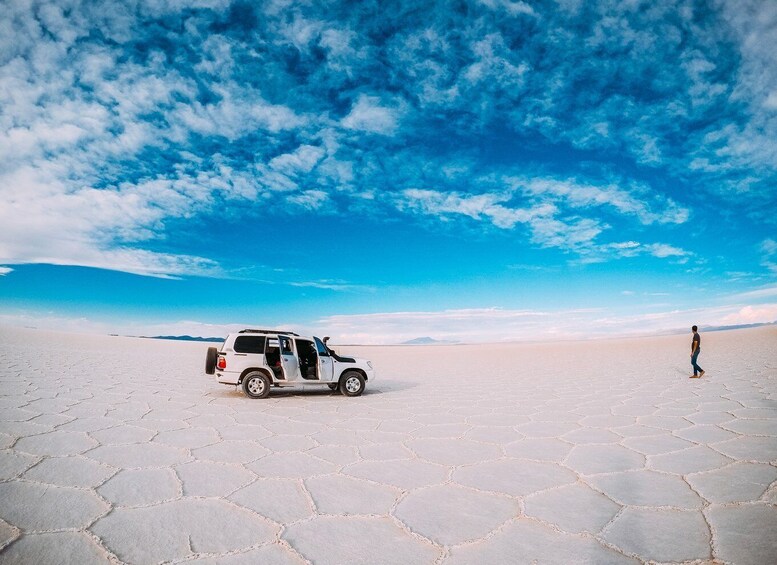 Start your private tour at 10:30 a.m. with a drive out to the Uyuni Salt Flats.