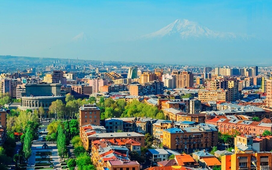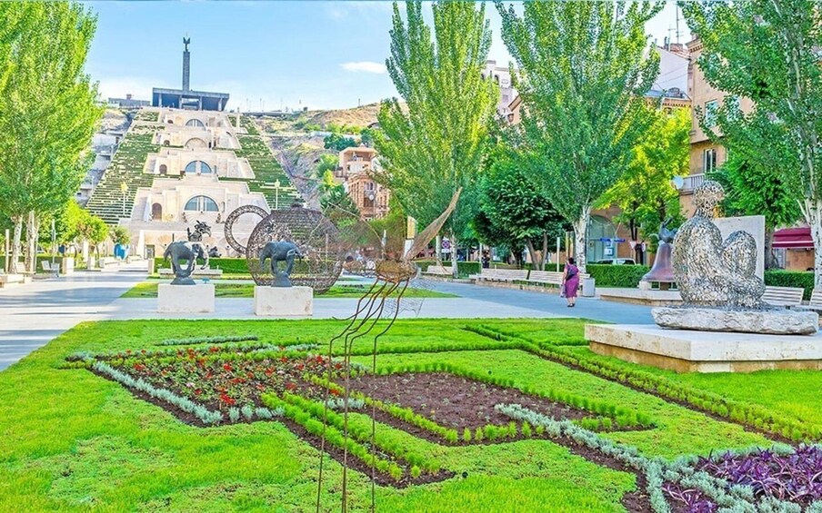 ทัวร์ของเราเริ่มต้นที่อนุสาวรีย์ Mother Armenia ที่สง่างาม ซึ่งเป็นสัญลักษณ์อันทรงพลังของความแข็งแกร่งและความยืดหยุ่นของประเทศ อนุสรณ์สถานแห่งนี้ตั้งตระหง่านอย่างสง่างามในสวนแห่งชัยชนะ โดยมีทัศนียภาพอันสวยงามตระการตาของเมืองและภูเขาอารารัตอันงดงามที่อยู่ไกลออกไป